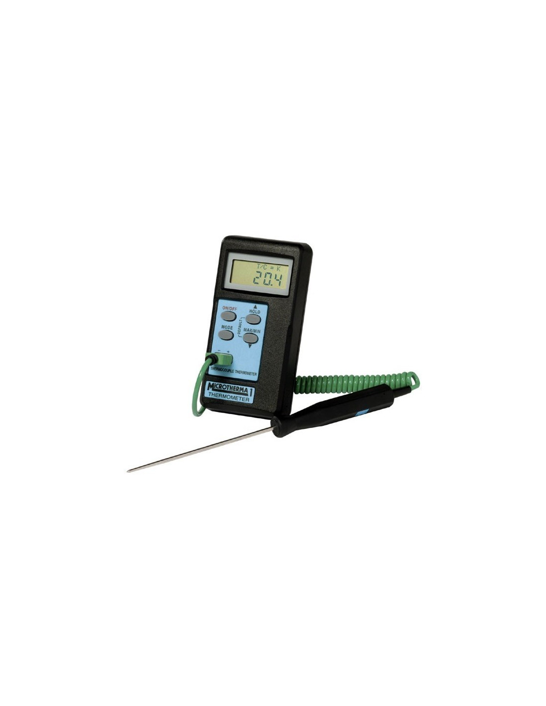 Z mikroprocesorsko vodenimi termometri serije MicroTherma 1 lahko merite temperature v območju -270 do 1768°C z ločljivostjo 0.1°C v celotnem območju. Temperaturne vrednosti se izpisujejo na dobro berljivem dual LCD prikazovalniku. Poleg prikaza izpraznjenosti baterije, termometer signalizira tudi maksimalne in minimalne dosežene vrednosti temperatur, detektira morebitne poškodovane sonde ter prikazuje zamrznjene vrednosti temperatur (funkcija Hold).