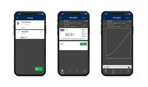 Z RFX lahko izberete, kako pogosto pošilja temperaturne odčitke na vašo napravo — ob vsakih 1,0 °C/F, 1,5 °C/F ali 3,0 °C/F spremembe. Večji kot je interval, dlje bo zdržala baterija.